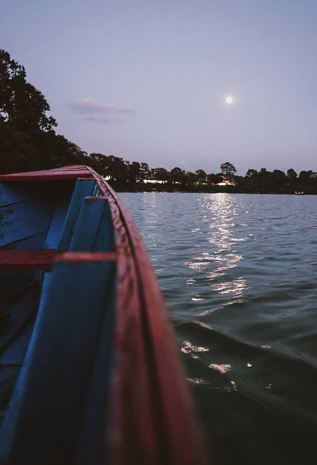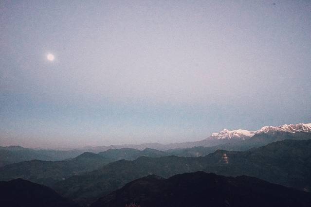 在费瓦湖上遥望了雪山,看了一轮远方的明月。