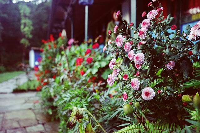 虽然条件不好,但庭院的花儿开的貌美。