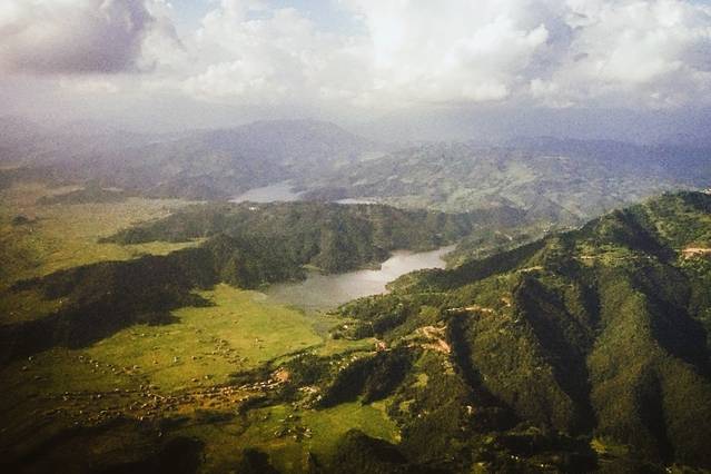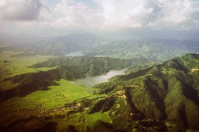 到博卡拉时,我们在飞机上俯瞰到了群山环绕中的费瓦湖。