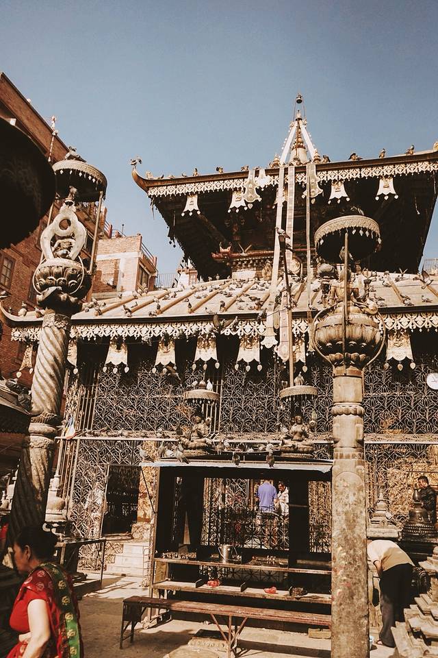 现在的杜巴广场,寺庙夹杂着废墟。在这些形态各异的寺庙里,依稀可以想见到曾经兴衰一时的古国。