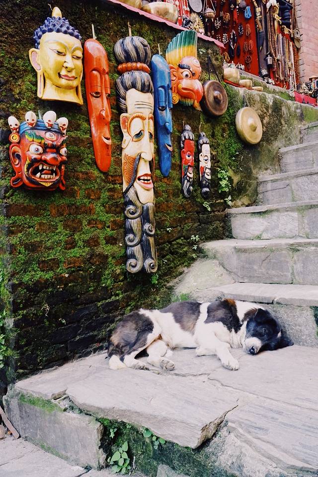 加都的狗儿们永远横七竖八地睡在马路上、佛塔边、任祭祀的人群如何喧闹丝毫不醒不动不闻不问。