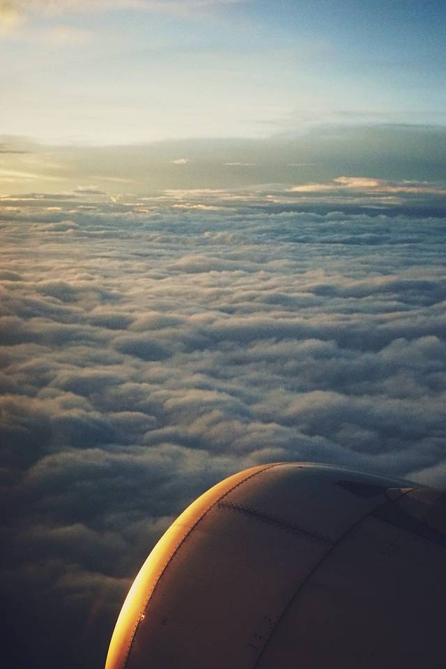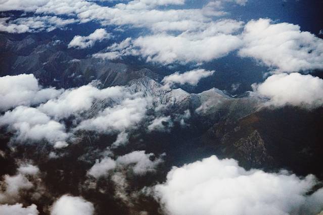 在飞机上,我们看到了远方跟视野平行的喜马拉雅山脉,在云层的掩映中忽隐忽现。