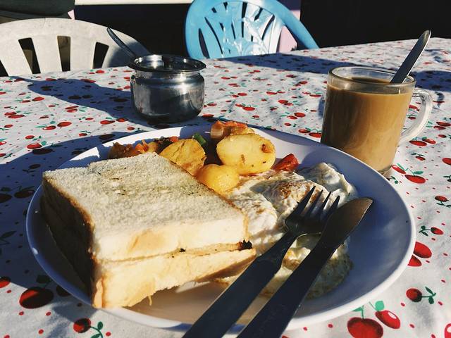 于是我和小伙伴在这看起来像是国内某不发达小镇的地方,带着口罩和墨镜,活像两个劫匪,就这样招摇过市走在路上。