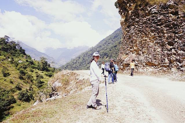 在徒步路上遇到一位中国妹子,妹子说她坐大巴从加德满都过来,花了十几个小时。