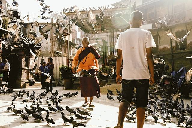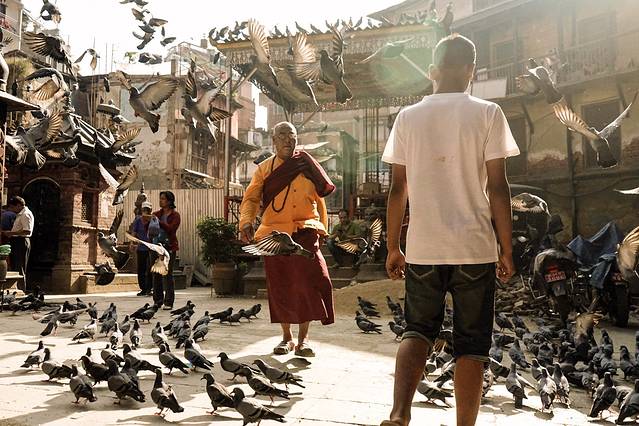 还有肥硕的鸽子,只有在人们驱赶时才动动翅膀飞一飞,平时就停在佛塔上,屋顶上傲视这些人类们。这就是加都吧,人们都自在而满足,动物们更是开心而自在!