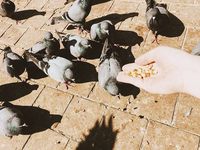 鸽子仿佛把这里当成了自己的家,等着有人们将它们喂饱,也许他们是众神洒落在人间的英灵,注视着人间的生活。