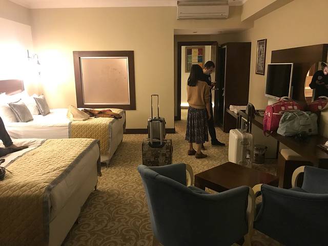 饭饱后继续驱车去向棉花堡附近。我们去土耳其之前。土国和美国就闹掰,互不给对方签发签证。booking在土国境内也是没有办法订酒店的。但是淡季人少,我们一般是在booking上面收藏好酒店,再接着导航过去,直接付现金。在去哪儿上面看了一个评分比较高环境好,价格还比较便宜的酒店,最后误打误撞住了住到了别家,环境还不错。酒店离棉花堡也比较近,开车5分钟就能到。200里拉一晚,含早餐。