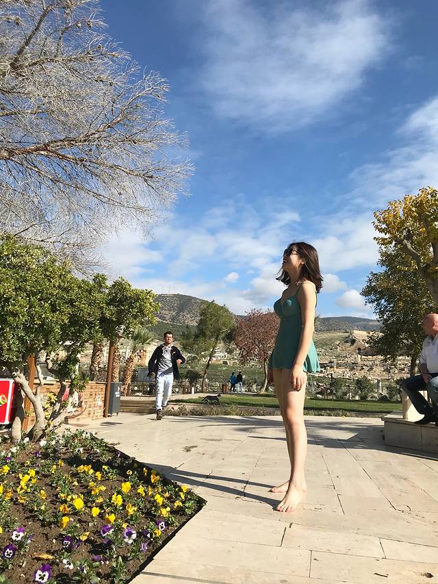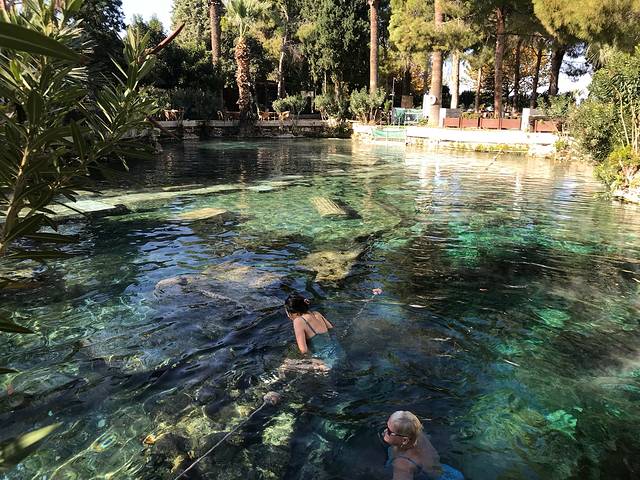 进棉花堡买的门票是不含温泉门票的,志玲姐姐同款,记得志玲姐姐当时出水的那个画面美的呦~这里我只能唱一句我们不一样……都是泡温泉,出水的样子有点不一样~选择下水前拍两张照片还是明智的。