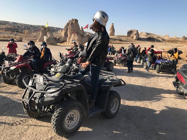 早上到达格雷梅,坐在大巴车上看到慢慢下降的热气球。心想明天我们也要坐在热气球上看日出了,在booking上看到一家评价还不错的洞穴酒店,下了大巴车就导航步行过去了。进去了才知道,原来这是拍花样姐姐时,他们当时住过的酒店。住的四人间,一张双人床,两张单人床。平均450里拉一晚。找到酒店正好赶上酒店的早餐,早餐很丰盛哦,老板的儿子还会给煎鸡蛋呢,吃完早餐洗完澡补了一觉,准备出门玩ATV,出门前就接到通知明早热气球停飞