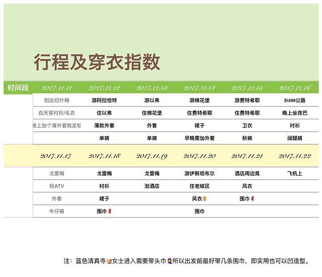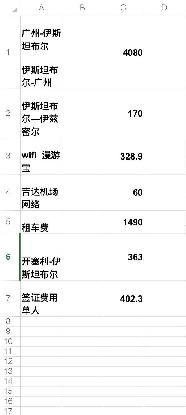 行程的一些大致费用。