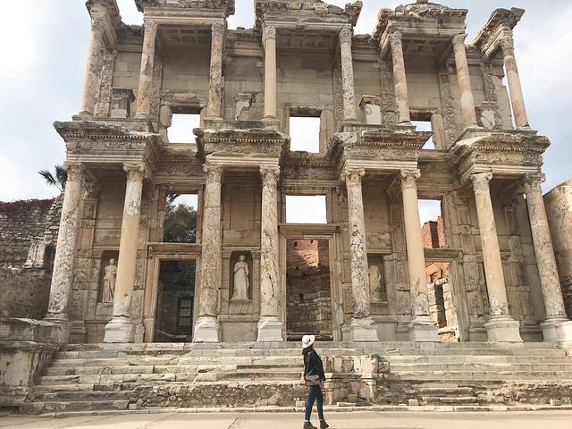 塞尔苏斯图书馆(Celsus Library)是土耳其以弗所古城废墟里的一座建筑遗迹,两层高耸的爱奥尼亚式门柱是它的显著特征,高大宏伟,远看就像一座宫殿。