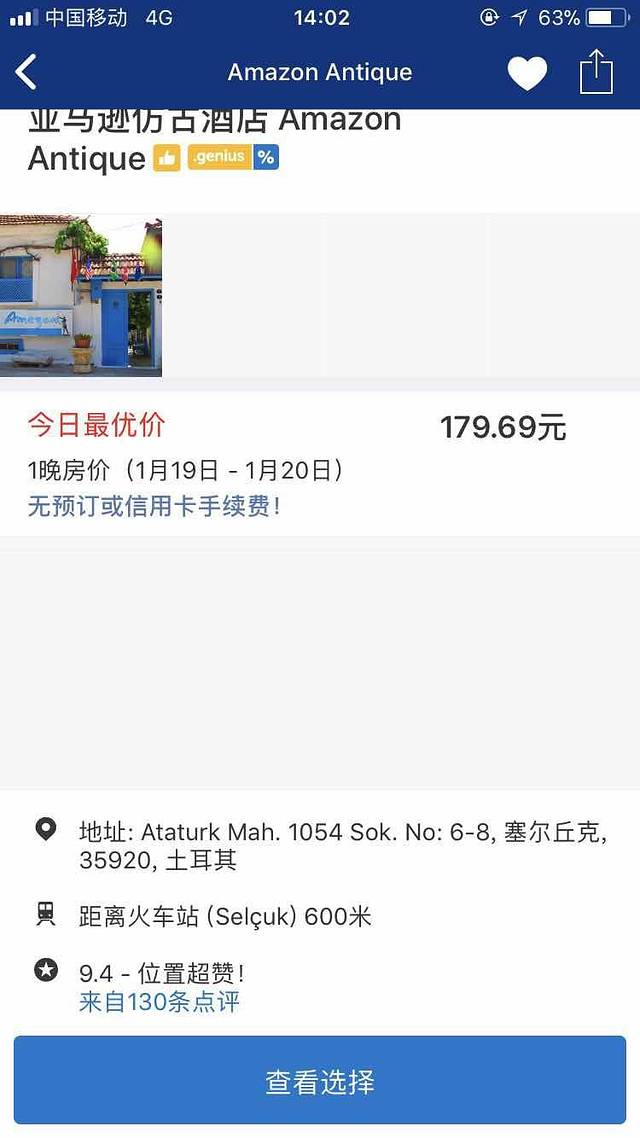晚上住在以弗所古城附近,民宿的外观是蓝色的,院子里面有一个大大的橘子树,一般都是老板给客人榨果汁喝的,厨房里的厨具都可以用。早餐也很丰盛,土国对爱吃甜点的人来说就是天堂,包括飞机上都有很好吃的镜面蛋糕和提拉米苏。酒店和餐馆更不用说了,必备甜点,每个酒店的早餐里都有各种好吃的果酱,蛋糕之类的。老板很热情,主动帮忙搬行李到房间,门口有免费停车的地方。