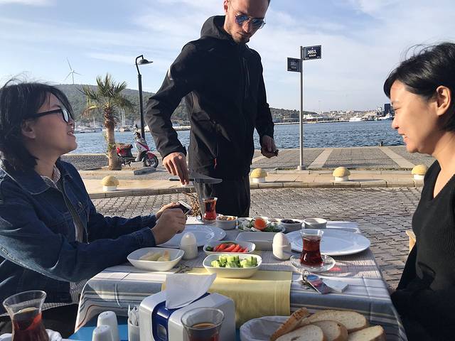 当天开车到切什梅,住在小镇的民宿里,booking订了两间标间,老板超好给升级了一间带阳台的海景房。放下行李,两天没怎么好好吃饭,身体疲惫就在隔壁吃了个超大份的炸鸡土豆泥。看到小镇上的人悠哉悠哉的喝着酒唱着歌弹着吉他,羡慕他们对生活的态度。