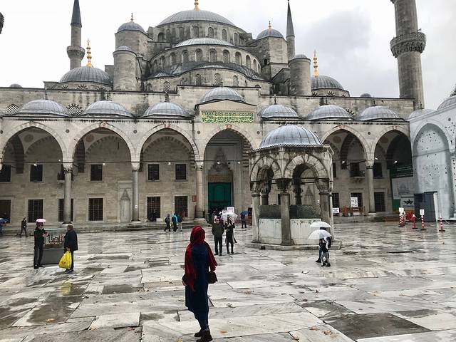 到了伊斯坦布尔先坐大巴到了市中心,下着大雨,拿了超过行李,索性就选择打车到酒店了。这个酒店是全程住的最迷你的酒店了,四个人住比较小。到蓝色清真寺,索菲亚大教堂,步行十几分钟就可以到。