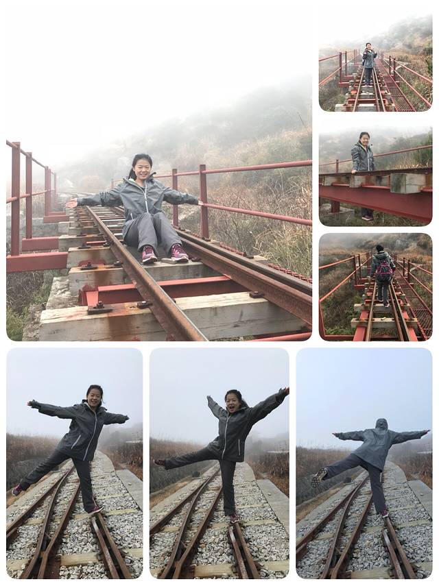 本来打算一起看日出的,可是觉得好冷放弃了。早上一起来发现大雾弥漫啊!能见度50米吧……果断睡到八点多,九点多悠闲的起床出门,放弃做小火车,走铁轨。先去吃早餐
