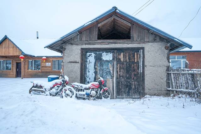 接着我们开往北红村,当车驶入北红村,就明显感到比北极村荒凉很多,广哥说北极村是镇,有几千人口,下面还有几个村,而北红村就只是一个只有一百多户人口的小村庄。到住处放下行李,听到外面的寒风呼啸,我真的感觉来到了一片苦寒之地。