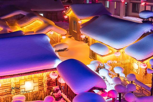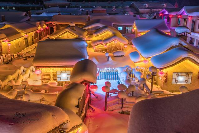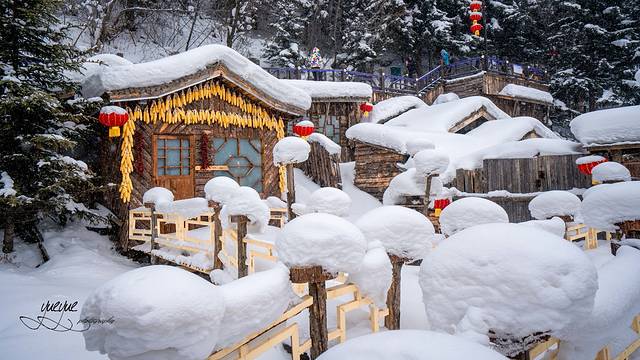 浓墨重彩的雪乡,当雪飘落的时候,犹如身处一个童话世界..