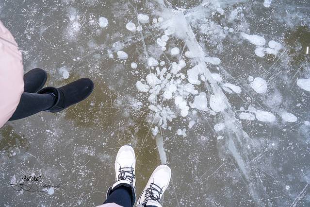 踩在冰面感觉很神奇,总有点担心冰块会不会突然裂开,有点刺激.,冰块里还凝结着各种好看的小气泡。。