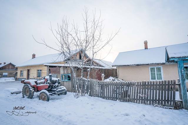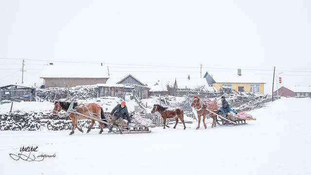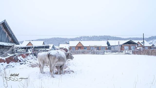 连路边的牛和马都显得很寂寞,披着雪立在寒风中不愿动弹..偶尔扭个头算是对你的尊重..