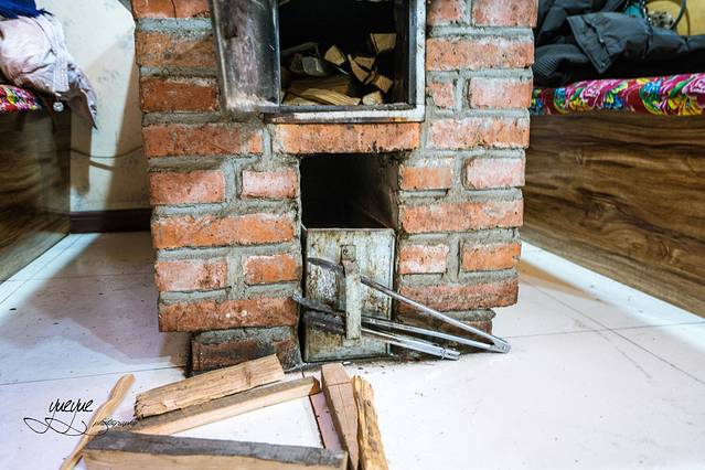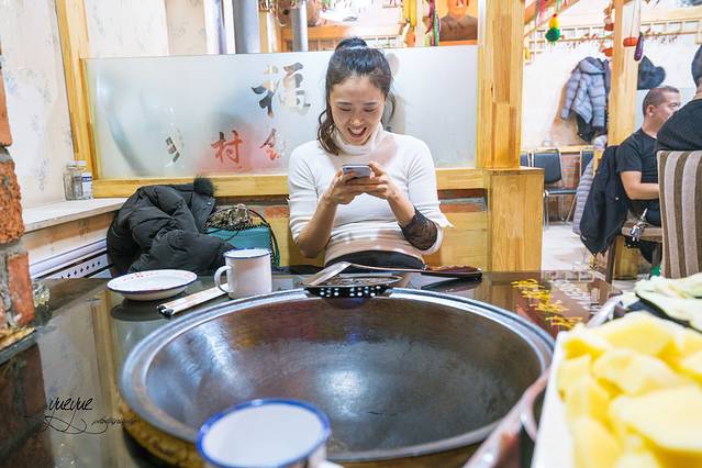 坐下来生起火之后我们都觉得快要热死了,所以去吃铁锅炖切记要穿些薄点的衣服在里面..