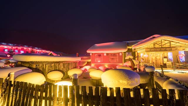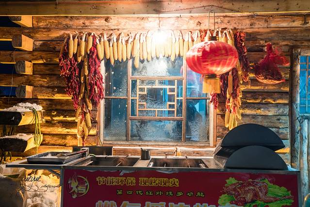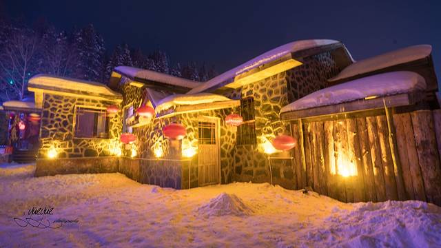 雪乡还是冷的,特别是那天还下起了雪,走在冰凉的栈道上. 欣赏着雪乡美丽的夜景,这一刻,感觉身体是受冻的,眼睛是享受的。雪乡的夜,就像一个被蛊惑的梦境。浓黑的天色与大红的灯笼,寒冷的空气与蒸腾的炊烟,安静的雪色与热闹的人群,这些矛盾存在在雪乡这个不大的村落里,在夜色下都变得合理起来。这是在栈道上拍的雪乡夜景,一点也不必要门票的梦幻家园逊色!