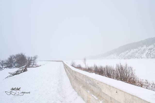 不知不觉的走到了黑龙江边,由于靠近河边所以这里的气温更低,积雪也很厚,这里才是真正的冰雪世界..