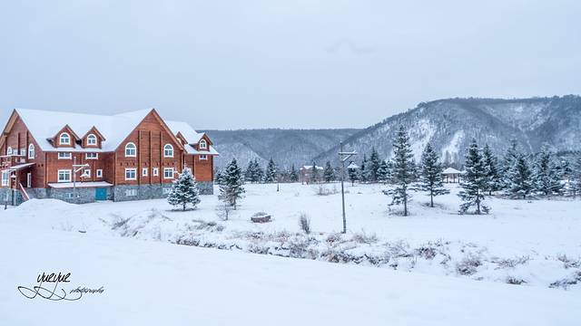 光哥顺带带我去了中俄边境的黑龙江边,这里的松树顶着雪,错落有致地显得特别的好看,还有许多别墅...这一刻我仿佛置身于某欧洲小镇..