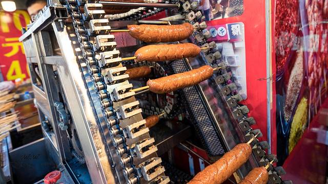 在这里,烤串烤肠应该是大街小巷里最常见的了,哈尔滨红肠和秋林红肠是这里特色,走进一家小店,卖烤肠的小哥就开始要喝了:“美女吃什么,我这个是哈尔滨红肠,我这个不仅是纯肉灌的,而且非常地好吃,你看这个形状,一口就能让你找回初恋的感觉,不仅能找回初恋的感觉,而且还有五种口味随意搭配,有香辣麻辣孜然叉烧原味哦,美女,你看这根符不符合你的气质,又粗又大又好吃哦,还在犹豫什么美女,交出你的money,交钱就拿货。。”,顿时笑翻,感觉不吃一根都不好意思了。。