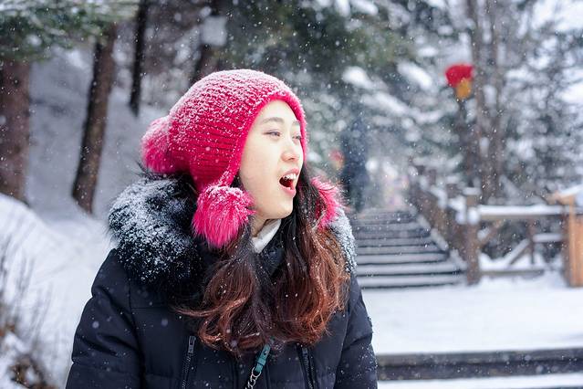 在寒冷的环境搞摄影真实艰难的事情,是相机,电脑,手机也是经不起冻的,电池分分钟掉电关机,可以把电池卸下来用暖宝宝暖着或者踹兜里。 还要注意从室外到室内相机容易起雾的问题。从寒冷的室外进入到温暖的室内,最好把相机放包里或者塑料袋套着,否则碰到屋里的热气就会起雾,然后凝结成水蒸气,然后相机表面就湿漉漉的一层。 不过还好我还没怎么碰到相机内部起雾的情况,就有一次55镜头的uv镜里面起雾了,结果外面又结成冰了,拿下来擦了下装回去结果没装好掉雪了,损失一块uv镜,哭。。