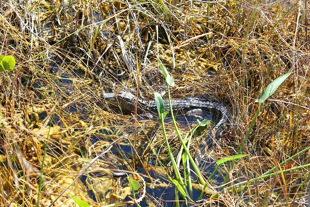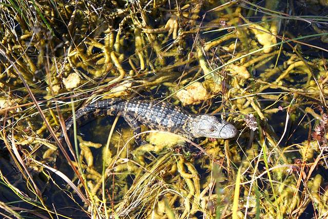 直接一路向西开往Everglades大沼泽国家公园的Shark Valley Visitor Center去坐guided tram。因为路上耽误了一会儿所以到晚了些错过了前一班车得再等四十分钟才到下一班。朋友们要去坐的最好查好时刻表。但这四十分钟也并不是无聊的。在离游客中心很近的地方有一条小trail叫Bobcat,没有什么太大的意思但还是可以打发下时间的,路上看到了两条可爱的小鳄鱼。