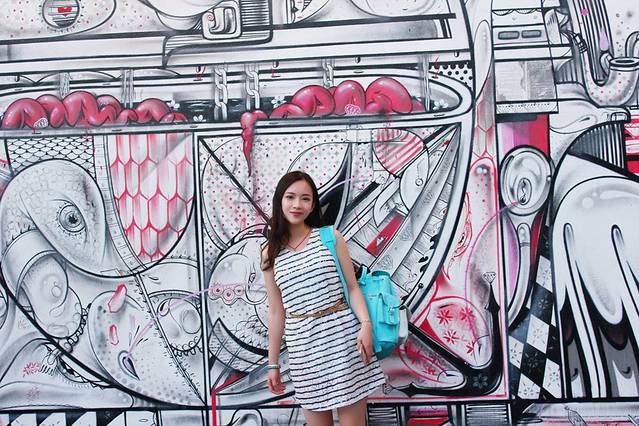 接着打了个uber去小有名气的Wynwood Walls涂鸦墙。本来以为就是好几条街都充满了涂鸦墙,没想到还是专门有经营过的一片小区域用于观光。进去了才特别后悔自己穿了这么条小裙子和人字拖就来了,涂鸦墙都特别绚丽特别酷,里面也充满着各种美女酷哥游客,感觉自己的画风特别不符哈哈。要是穿身cool girl style来就对了呀!