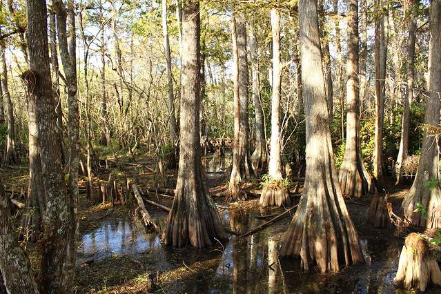 这个树虽然看似干枯也不高,但在水底下有它水上三倍左右的高度。我忘了名字但是是大沼泽公园这边特有的一种树。