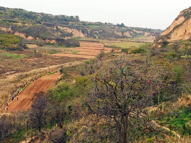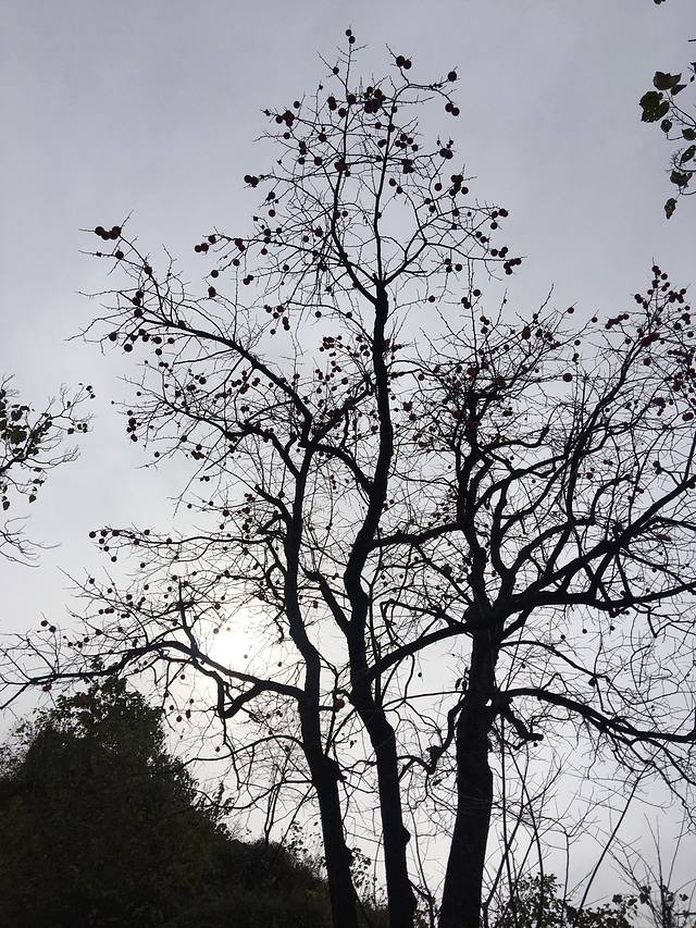 大家能看到下面走在芦苇旁边的人吗?我估计我就在其中走着呢,这张照片大姐是想拍这个柿子树,柿子挂满了树枝,红红的很漂亮,我很想摘下来吃,就是太高了!