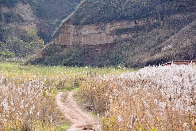 ”蒹葭实为芦苇,靠水而生,遇冬苇杆变黄,开出白色的苇花,一朵朵飘摇在山涧,临潼马额镇内千亩芦苇荡,肆意渲染着这个初冬最动人的风景,进入沟内沿着平缓的小道,独特的丹霞地貌立于两面的山崖,从沟底拔高500米可以上到穆柯寨,穆柯寨寨城遗址位于海拔约800米的骊山山麓,房舍建筑早已无存,夯土垣墙大部分已毁,然当年夯打的寨墙及寨内穆桂英的饮水井依然斑驳可见….