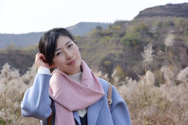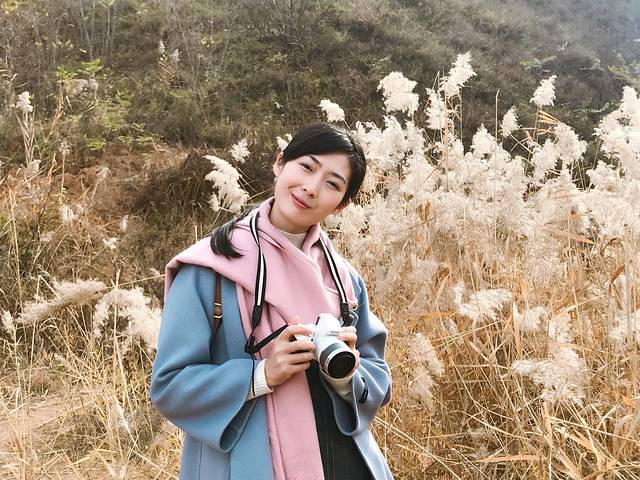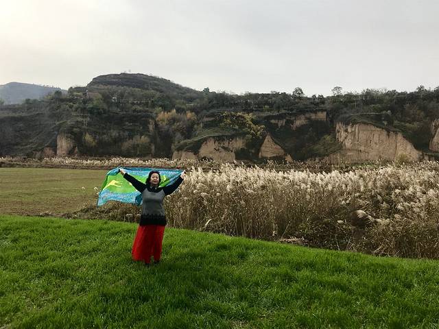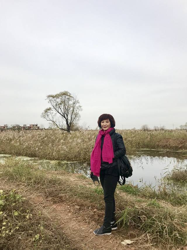 这个照片是同行的一个大姐帮我拍的,我本来面对着她,第一张照片的样子,她问我可不可以侧着脸往山的地方看,我照做了,果然很漂亮,看来大姐们都是拍照的隐士高手,主要想展示的是后面那一排白白的芦苇,不错吧!