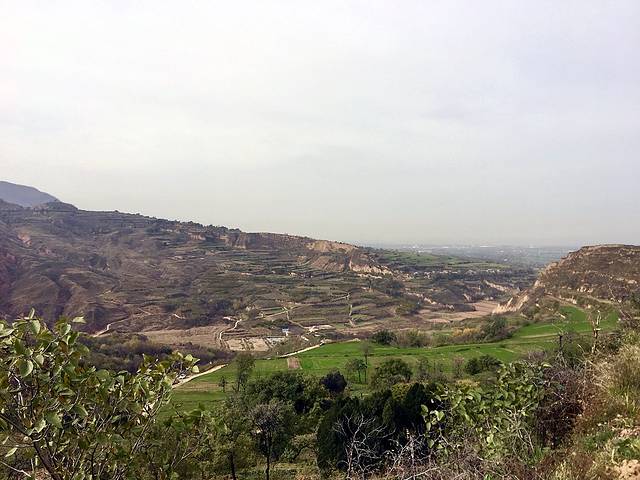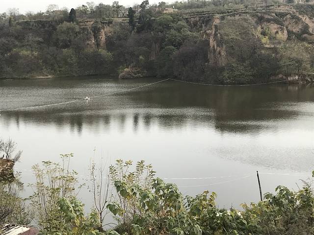 去往芦苇荡的路上的左手边,会看到这样的一个水库,不大不小,安静的坐落在那里,路的右边是一个类似于峡谷的地貌,里面有树林、有草地、有麦田,还能看到在劳作的人们,好想下去走走,但是芦苇荡的风景更吸引我,继续前行!
