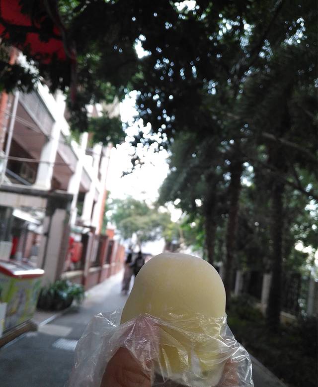 榴莲蛋糕,外表像广东的冰榴莲,不过这个榴莲蛋糕比冰榴莲多了个小蛋糕在里面,而且口感不够冰榴莲的好吃,5rmb一个