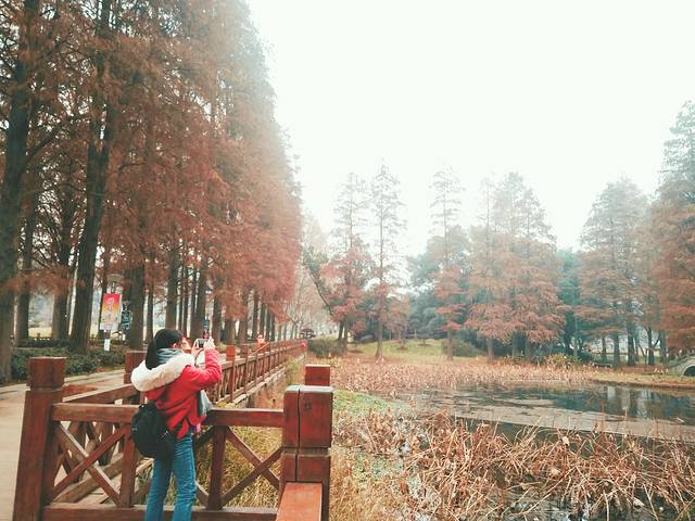 因为是冬天去的,风景区里面一种不知名的树叶子正红,看上去很是好看