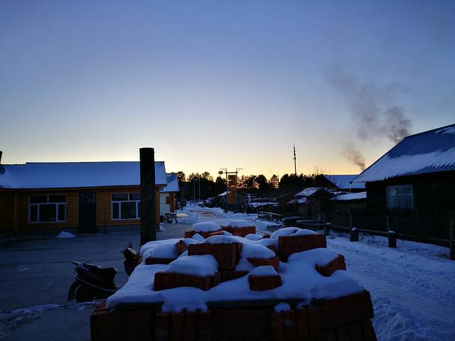 一大早九点半到北极村,招待我的人家倒也热情,房间挺干净清爽的,先补一觉再说。我住的是普通标间,晚上还看到他家还有火炕房,外墙上一个小洞,把柴火塞进去噼噼啪啪地烧着,估计躺在火炕上感觉就像在烤乳猪,我是睡不惯,太干太热了。