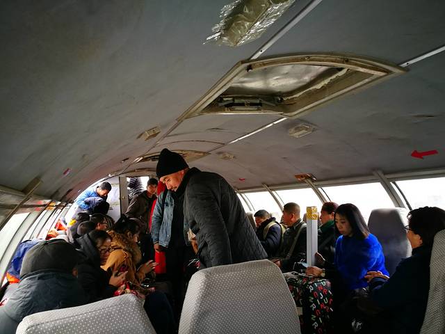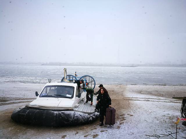 今天在淘宝上预定的海兰泡一日游,联系大姐超级热情,还在微信上发了一长串黑河各种吃的玩的攻略。早上七点在出入境大厅碰头以后,大姐说现在绝对是淡季,旺季的时候这大厅到这个点早已经是人头攒动,排队估计都得排到外面去了。而且现在是全黑河各大旅行社一起凑人才凑出我们这一个团,要是夏天每一个旅行社都恨不得发好几个团。现在河水是要结冰没结冰的,不然的话夏天就坐普通轮船,冬天河水全结冰了就开汽车,现在只能坐气垫船,要再加100块钱。气垫船果然先进,就是船下面大大地充气,然后从浮冰上面嗖嗖地水上漂过去;不过据说气垫船也很容易坏,所以我们那天运气还很好,来去都很准时。