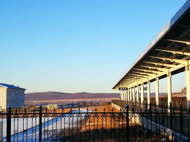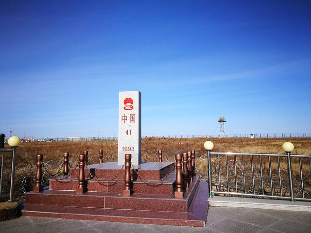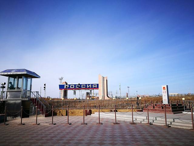 今天早上工作到十点多,出来觅个食吃个早午餐。然后从市区可以坐某路公共汽车到中俄边界的国门景区。门票80元,网上也没有优惠,算是给站岗的兵哥哥们贡献吃烤猪排吧。下了公车以后往前走,看到一个豪华的国门景区游客服务中心,千万别进去,就是一大商场,一点服务也没有。一直往前走,网上购票取票也都是在景区正门口,换了票,兵哥哥查了身份证,才可以进去。