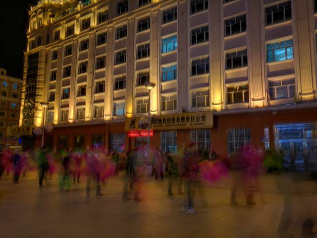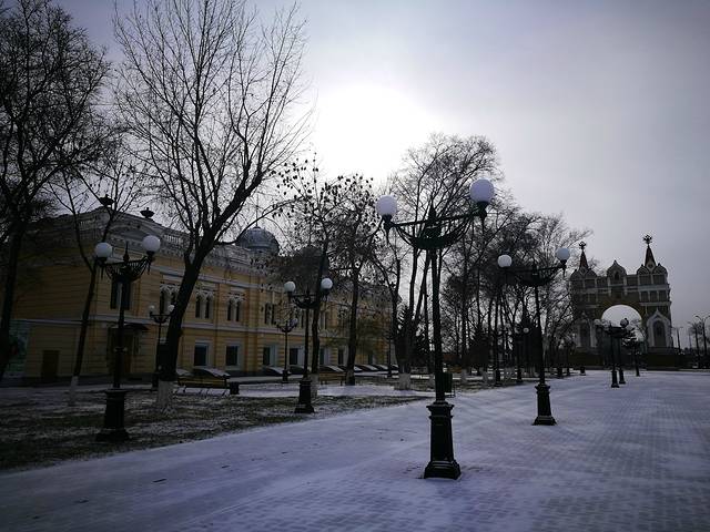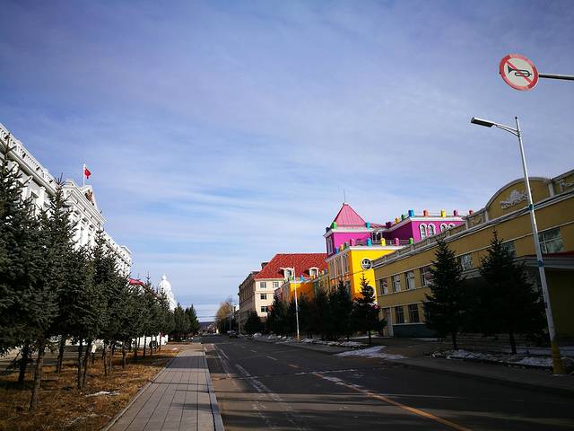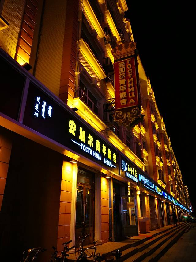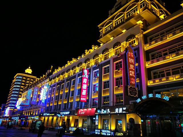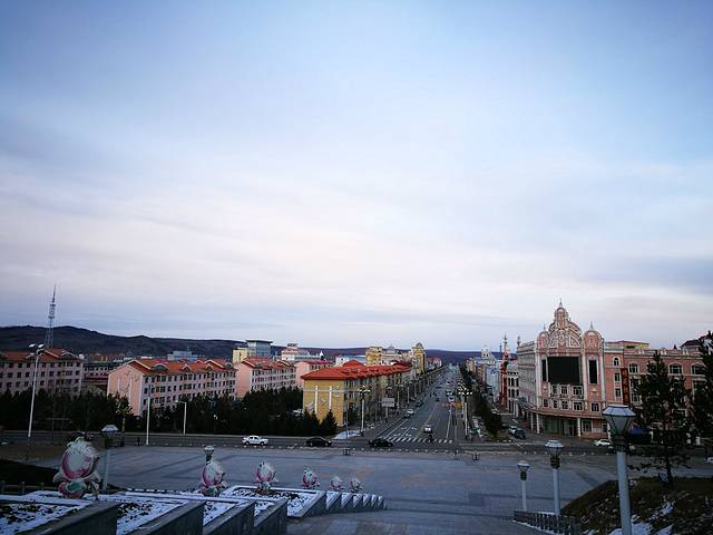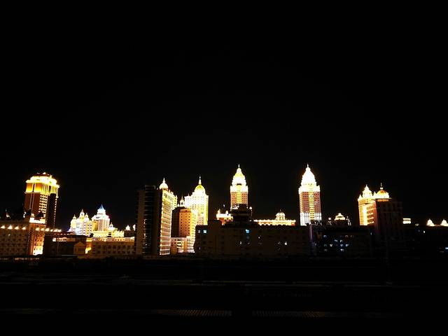 从火车站走到旅舍20分钟,还没出站就已经看到远远的金色的屋顶,没想到过了天桥来到满洲里老城区,简直就是惊艳!所有的建筑都是金色镶边霓虹灯,整个小城简直就是一个金灿灿的童话王国啊!整齐划一的街道,干净空旷的步行区,看来天朝为了建好中俄边境小城这张窗口名片简直是不惜血本啊。