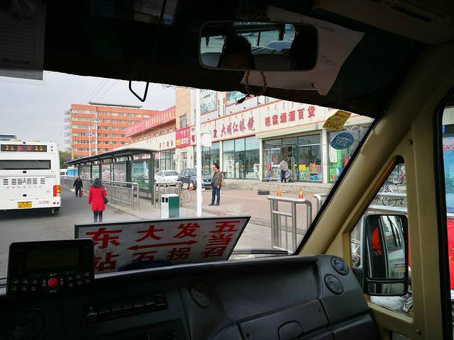 从包头东站可以坐公共小巴车直达五当召,高德地图上的发车时刻表很准确。吃完羊肉烧卖,我坐10:05的车,出发了。小巴车大概一共不到20个位子,一路不走高速,全是乡镇小路,专门去五当召的游客一车大概有五六个吧,当地人来来往往也很多,生意倒也兴旺。
