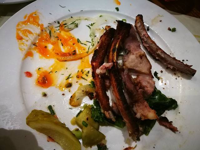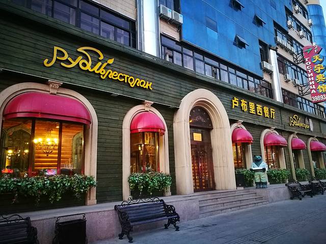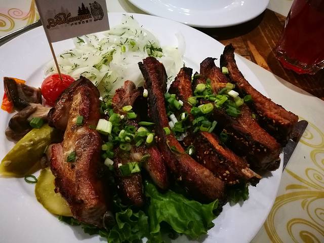 这么有俄罗斯风情的地方当然也有不少俄罗斯餐厅了,点评搜索了一家叫卢布里的,去之前期待就很高,因为评价太好,吃完了果然觉得名不虚传。餐厅很大,装修地也很漂亮,领座的服务员是一个美丽苗条的俄罗斯美眉,中文说地很溜。进去以后有一大片开放式的厨房,中俄厨师一半一半,都站在后面给我烤肋排呢。战斗民族的烤肋排不应该叫一人份,应该叫一周份,仔细数数一共有七根,配上土豆泥和生菜沙拉,看起来好大一份,可是,可是,因为味道太好,我竟然全部都吃完了,原来现在胃这么大了,难怪肥肉越来越多了T_T