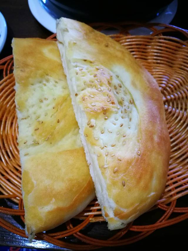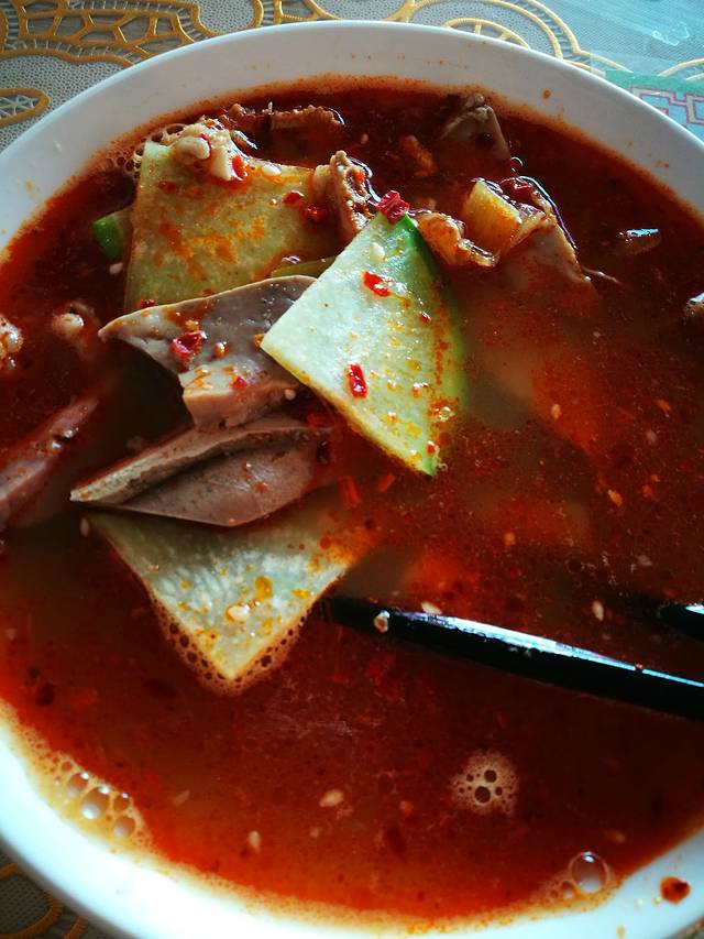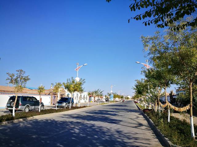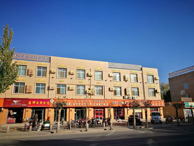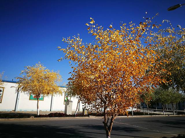 额济纳不大,野马离市中心大概步行20分钟吧,稍微有点远,不过太阳这么好,散散步也不错。一路上有一些小胡杨树,叶子也是黄黄的,映衬着蓝天真好看,算是小热身。走到步行街一看,哇全是川菜馆麻辣烫的天下。找到一家吃羊杂汤的,一听口音,也是四川人。不过四川人的确会做菜啊,再加上内蒙的羊肉质量就是好,做出来很好吃。老板说这里的本地人吃羊杂汤,一定是要用羊杂和羊骨熬出来的汤,羊肉熬汤那是不行的,太淡寡,一口就吃出来了。又路过一家不起眼的小糕点铺,做出来的麻花真是好吃呀。街上到处都是花花绿绿穿着冲锋衣的游客们,买买水果,买买瓜子,很悠哉。