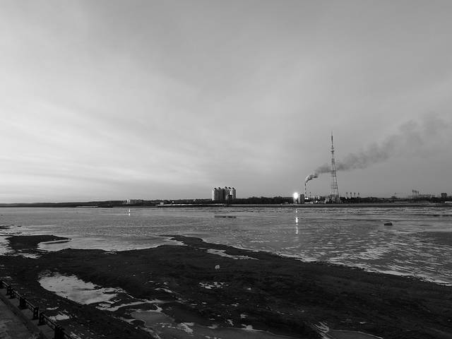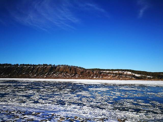 黑龙江已经开始结冰,但还远远没有封冻,顺流而下的冰块冰排冰渣无止尽地流着,好像永远也流不完似的。天空慢慢地开始越来越蓝了,以至于江面的底色也从黑色慢慢被晕染成炫目又浑厚的丝光蓝,流动的浮冰跟江岸厚厚的凝固的积雪互相呼应着,一个好像是流畅跳动的音符,一个好像是亘古不眠的化石,有动有静,有起有落,有悲有喜,有生有死。