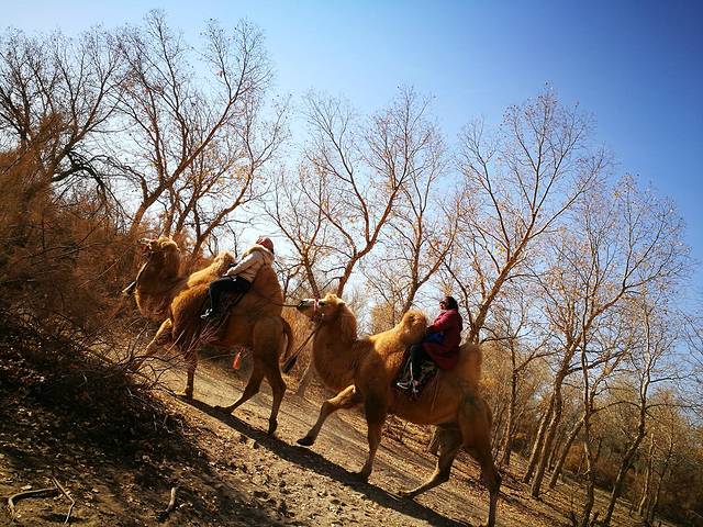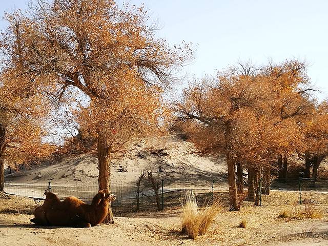 到额济纳也一路平稳顺利,额济纳机场比阿拉善差不多大小,当然也是没有什么机场班车的,打了个车到市区30块钱也还好,以为司机是当地人,结果也是从东北过来打工的。来之前知道额济纳的胡杨林季节性强,但没想到竟然这么强。整整一年胡杨林只黄五到二十天,太早了叶子还是绿的,太晚了叶子掉光了只剩树干。十月的额济纳就像是一年沉静十一月只为这一个月狂欢的大型马戏城,从出租车司机到青旅老板从饭店大厨到景区检票没有一个本地人,和同样是来自全国各地的游客们,上演着猫和老鼠各种智力大比拼。