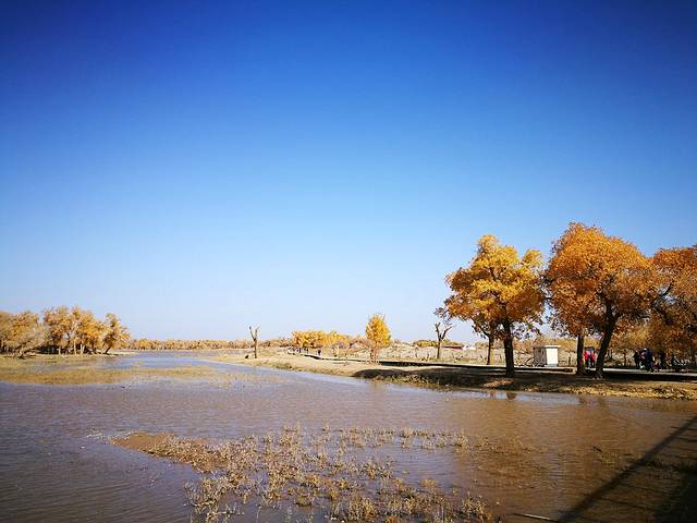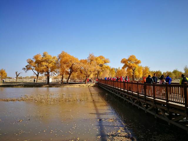 我是早上十一点左右到的,慢慢走玩地挺悠哉的,听说是最精华的七道桥我去的时候关闭了,可能是国庆期间游客太多,把步行栈道过度使用了。虽然没有看到七道桥,其他地方的胡杨林也是很漂亮了。即使这样,玩到最后出来也差不多下午四点了,所以一整天时间还是必要的。
