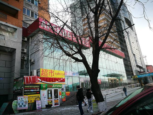 满洲里是一个极具异域特色风情的小镇,所有的商店都是中文、俄文和蒙古文三语招牌,到处都是拎着大包小包金发碧眼却一口东北话前来采购的俄罗斯银,也有针对中国游客售卖俄罗斯商品的,包括望远镜、巧克力、伏特加、套娃和各种皮毛等。