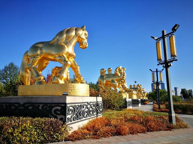 下车转转,康巴什给我的第一印象就是大气、崭新、空旷。十月底内蒙的天总是那么碧蓝,没有云,更不下雨,暖洋洋的太阳把整个城市都晒地明亮通透。本来准备靠两条腿的,没想到这里也有小橙车呀,赶快抢一辆。还好有它了,康巴什可比我想象地大多了,要是真靠走的,基本上去不了多远。